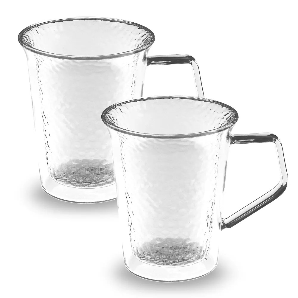 SADOMAIN 仙德曼雙層玻璃錘紋馬克杯 350ml-2入組(雙層玻璃杯/對杯組/茶杯)