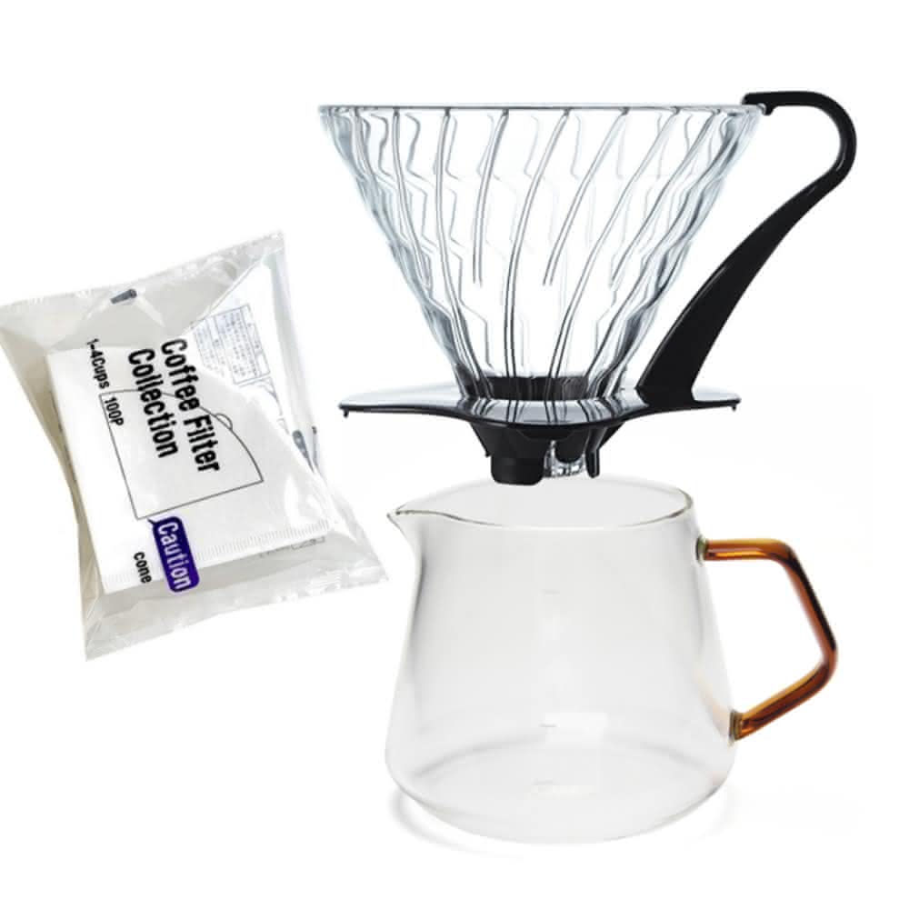 HARIOV60玻璃03濾杯組合-咖啡濾杯組(玻璃壺+濾紙100枚入)