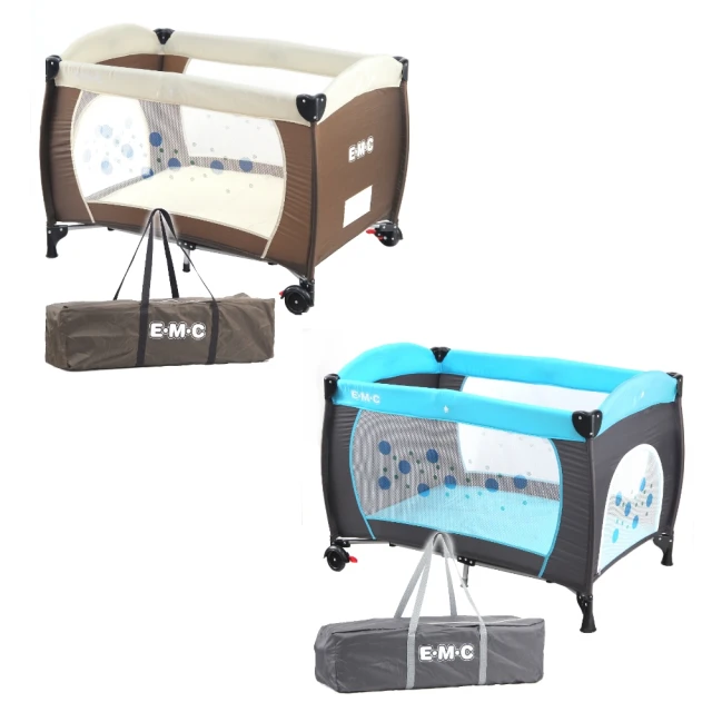 EMC安全嬰兒床具遊戲功能嬰幼兒安全遊戲床 附蚊帳/收納袋/可開側門(可收折嬰兒床)