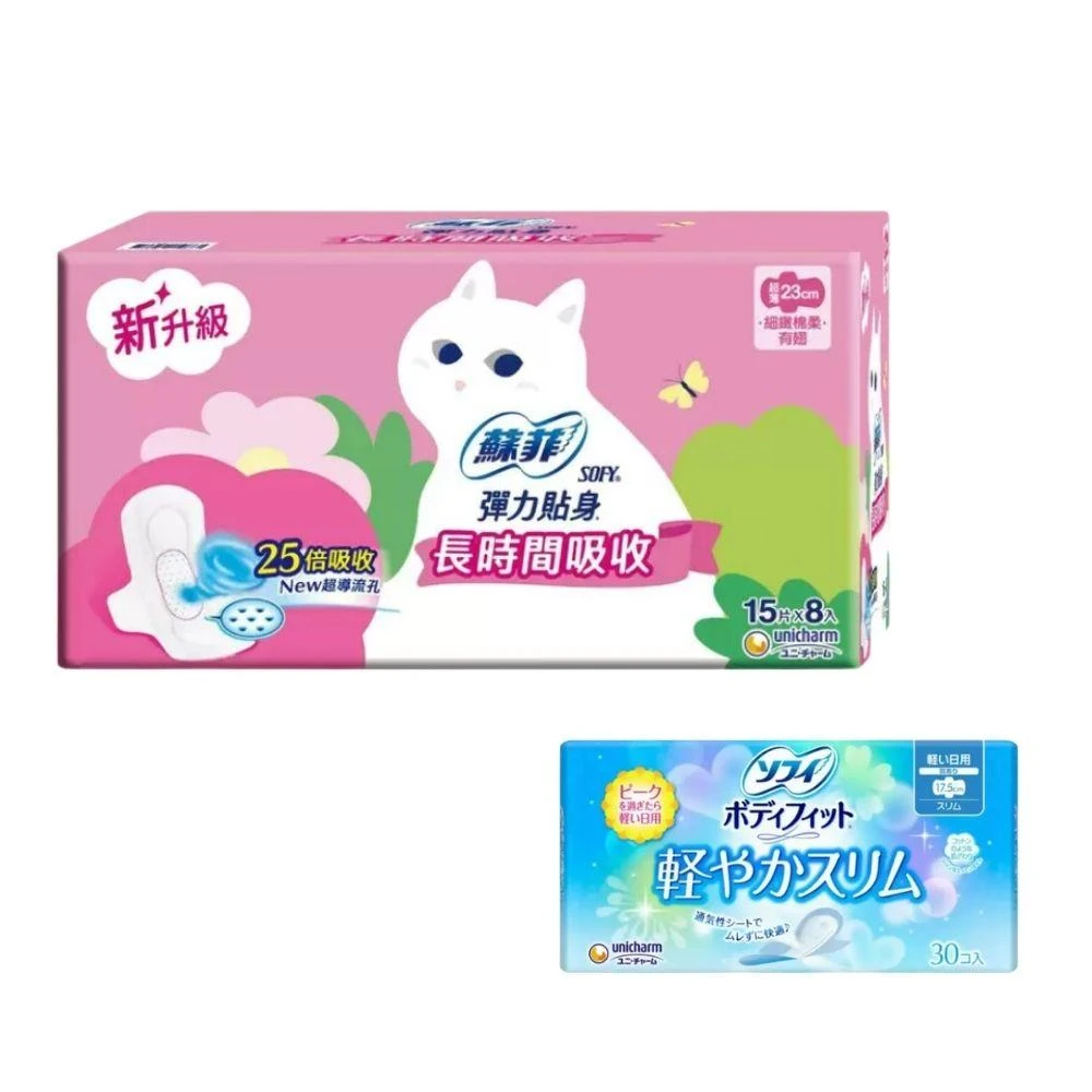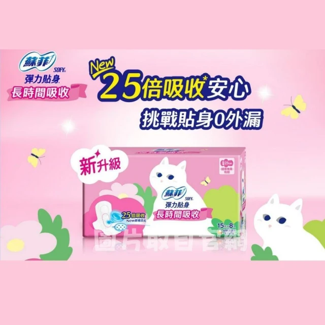 Sofy 蘇菲蘇菲⟪ 箱購8入+蘇菲(日本製)超薄量少型蝶翼護墊1包*30片⟫ 彈力貼身-超薄日用衛生棉23公分 15片 貼合瞬吸體 雙環防漏壓邊 絲柔表層