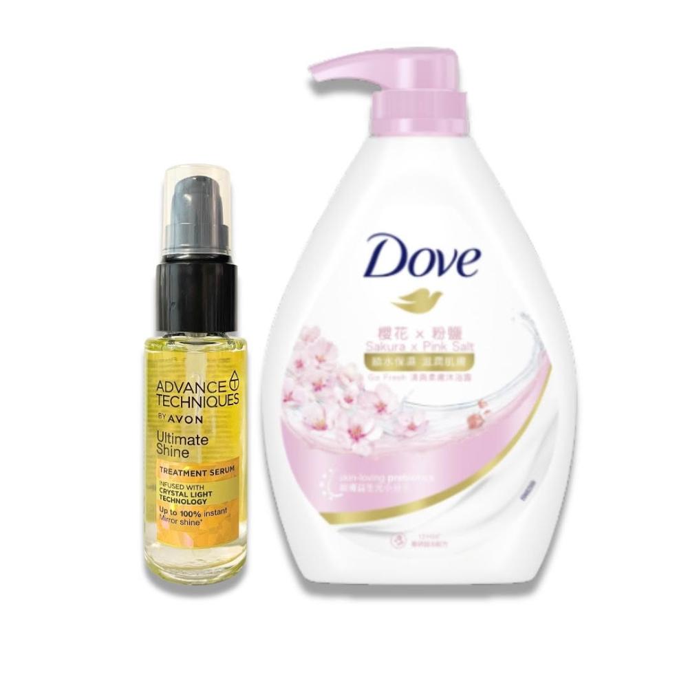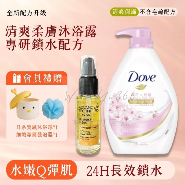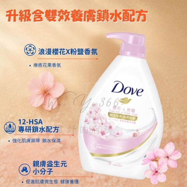 Dove 多芬清爽保濕|多芬 Dove 櫻花粉鹽香氛沐浴乳+毛鱗片護髮精華|沐浴乳 沐浴露 護髮精華 洗沐組