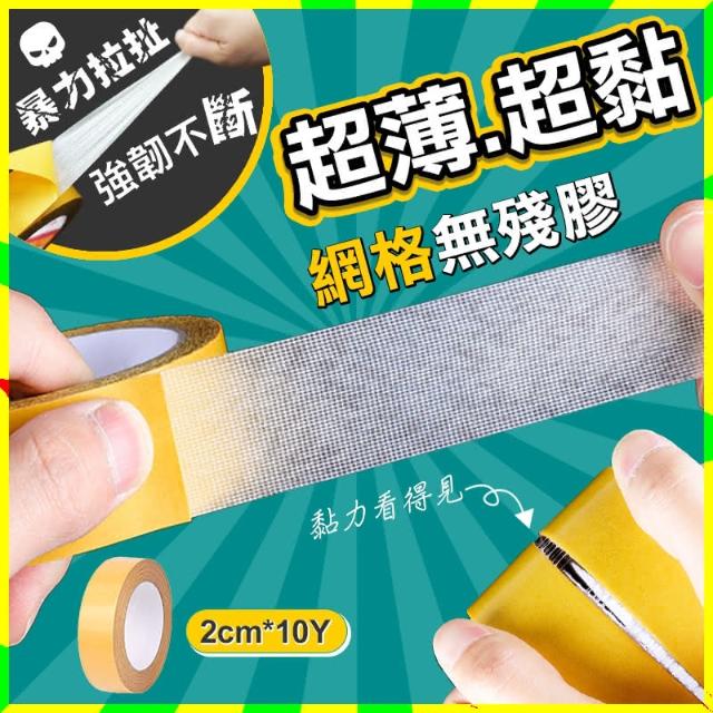 超黏無痕強韌網格雙面膠-2公分 x 10碼/布基膠帶/強韌膠帶/網格膠帶/雙面膠帶/無痕膠帶/海報膠帶/春聯膠帶(清SALE)
