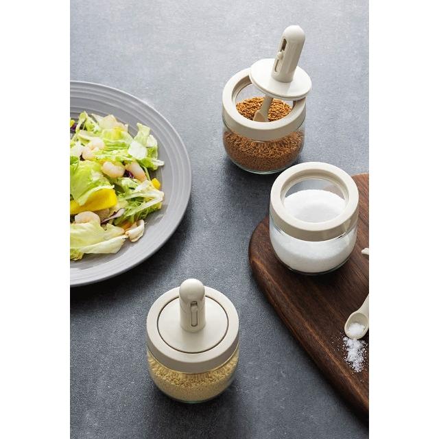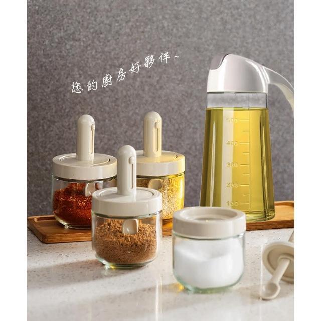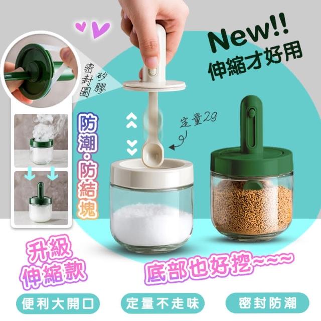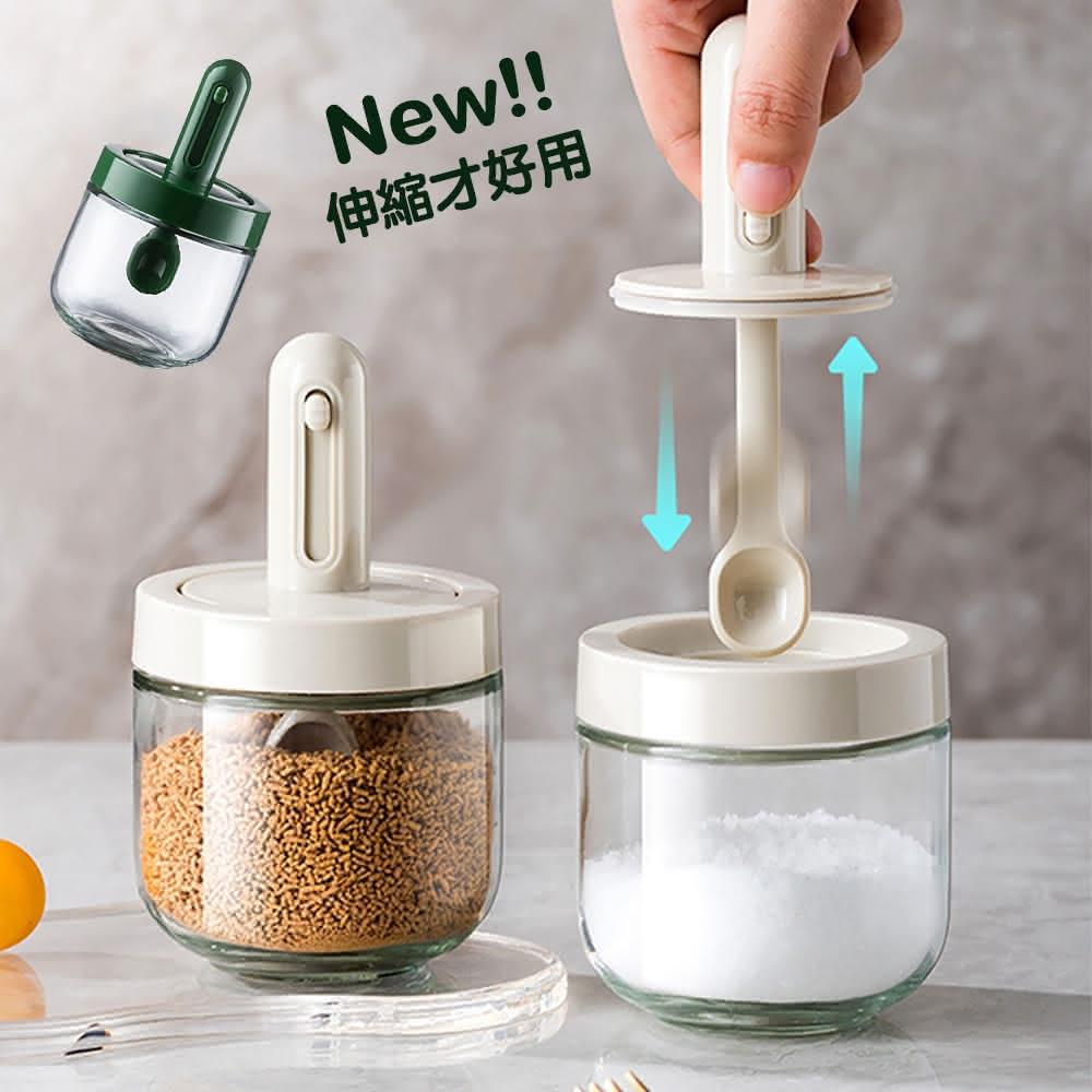 伸縮勺蓋一體玻璃密封調味罐/調味料罐/廚房/調味瓶調料罐/伸縮調味罐/調味瓶/附勺調味罐(清SALE)