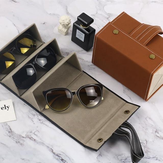 可掛便攜防壓折疊式眼鏡收納盒-三格/收納盒/眼鏡收納盒/墨鏡盒/眼鏡盒/眼鏡收納/多格眼鏡收納盒(清SALE)