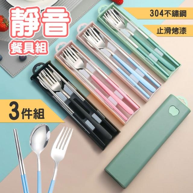 北歐風不鏽鋼靜音環保餐具三件組/餐具組/304不銹鋼/餐具/環保餐具組/露營餐具/湯匙(清SALE)