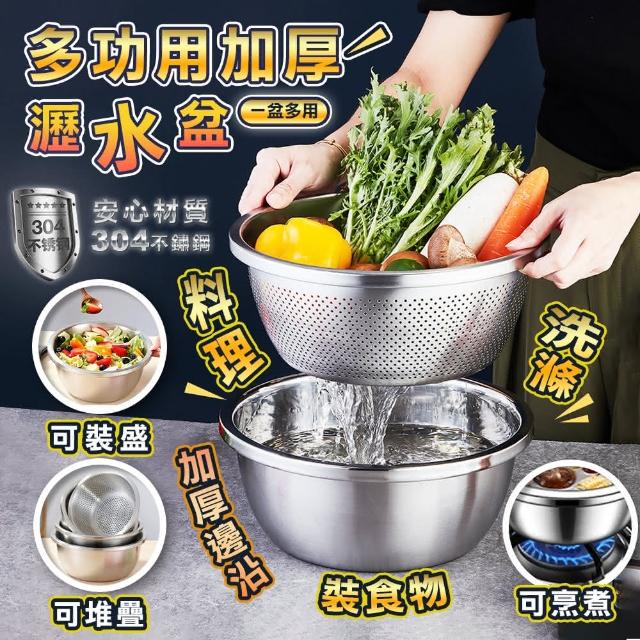 304不鏽鋼多功用加厚洗菜瀝水盆-26cm瀝盆組/304不鏽鋼/多功能瀝水盆/調料盆/洗菜/水果籃(清SALE)