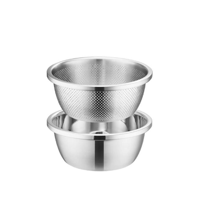 304不鏽鋼多功用加厚洗菜瀝水盆-26cm瀝盆組/304不鏽鋼/多功能瀝水盆/調料盆/洗菜/水果籃(清SALE)