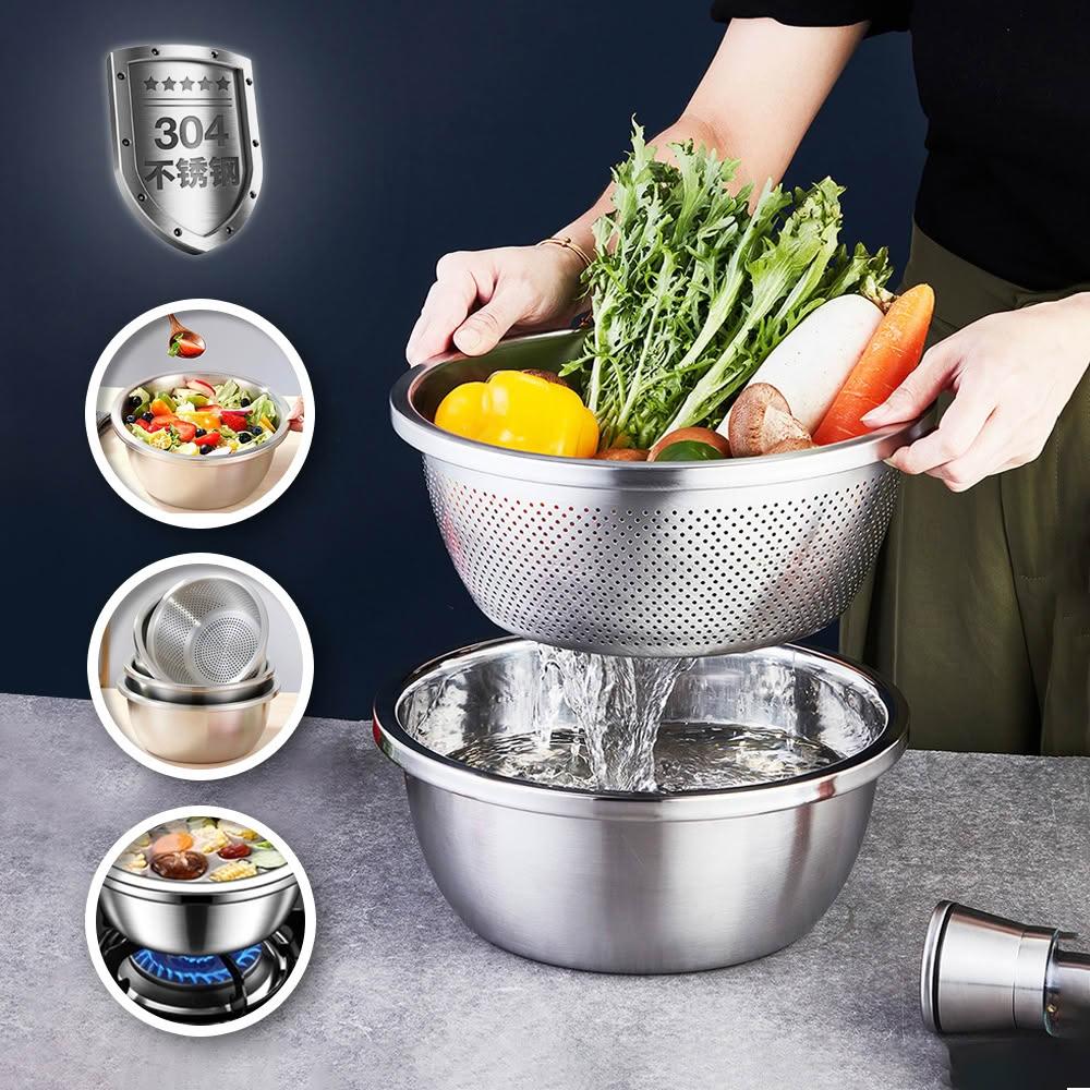 304不鏽鋼多功用加厚洗菜瀝水盆鋼盆加厚/304不鏽鋼/多功能瀝水盆/調料盆/洗菜/水果籃(清SALE)