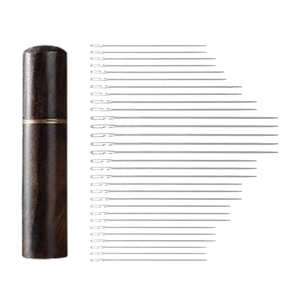 免穿線側掛式穿線針-30針+質感收納木瓶/免穿線針/縫紉針/手縫針/縫衣針/穿針神器/穿衣針(清SALE)