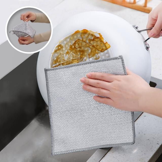 雙層加厚去油污銀絲抹布(5入)-鋼絲抹布/廚房抹布/銀絲抹布/鋼絲洗碗布/菜瓜布/鋼絲洗碗布/鋼絲菜瓜布/鋼絲布不沾油抹布(清SALE)