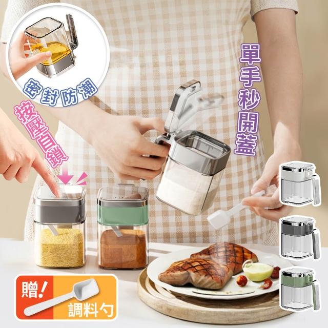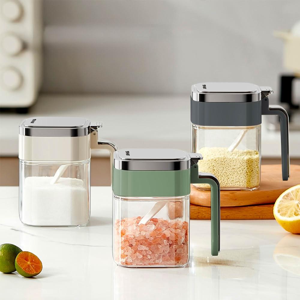 大口徑密封玻璃調味罐(雙重密封防漏)玻璃調味罐/帶勺調味罐/廚房調味罐/調味料收納/調味盒/廚房調味盒(清SALE)