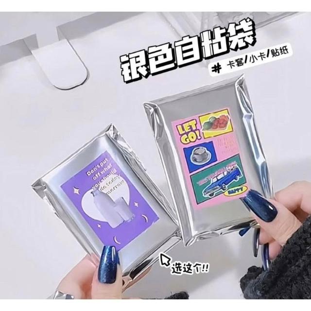 ins银色自粘袋出卡自封袋材料小卡卡套包装袋吧唧徽章密封盲袋 支持定制