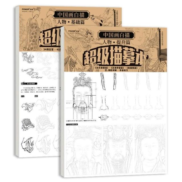 中國畫白描入門套裝 工筆畫底稿臨摹 國畫山水人物描摹 工筆白描底稿 繪畫書架 描摹本