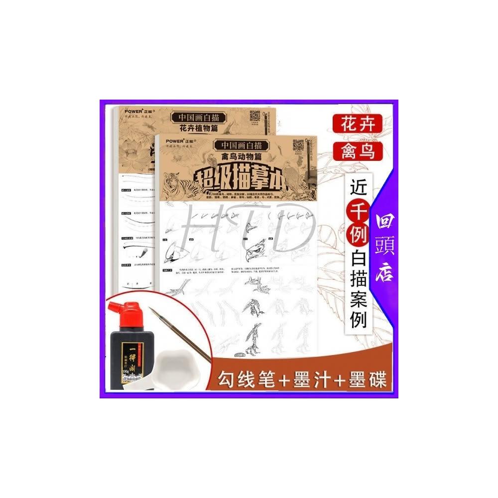 中國畫白描入門套裝 工筆畫底稿臨摹 國畫山水人物描摹 工筆白描底稿 繪畫書架 描摹本