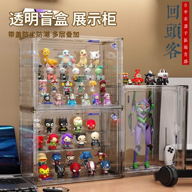 盲盒收納展示架大容量階梯式亞克力泡泡瑪特展示盒防塵手辦展示櫃