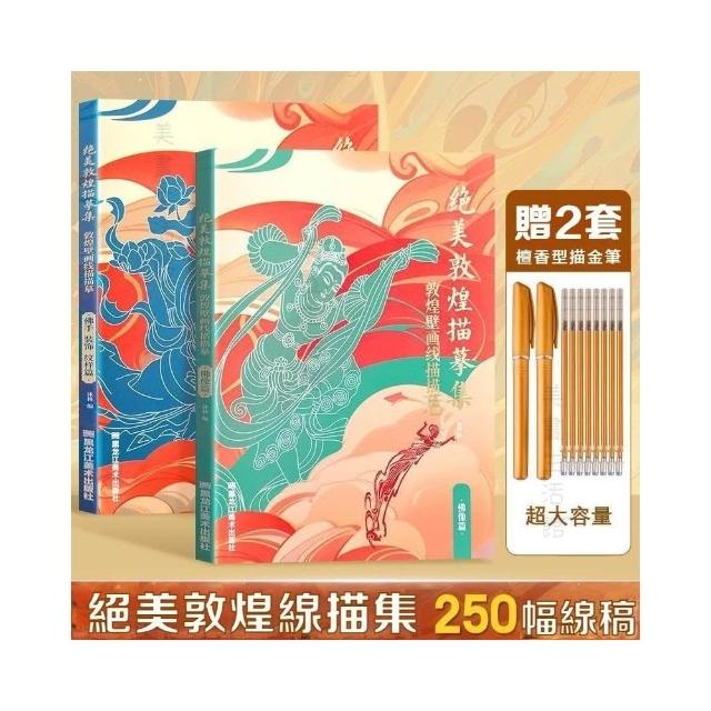 絕美敦煌描摹集 全二冊 贈全套抄經筆 敦煌壁畫線稿描摹本 敦煌線描本 佛像描金畫冊 一念敦煌 描繪本
