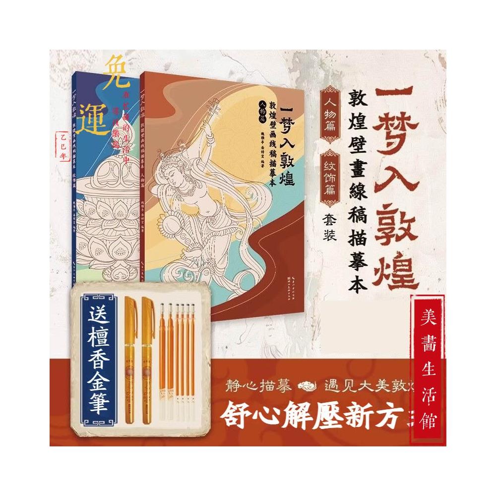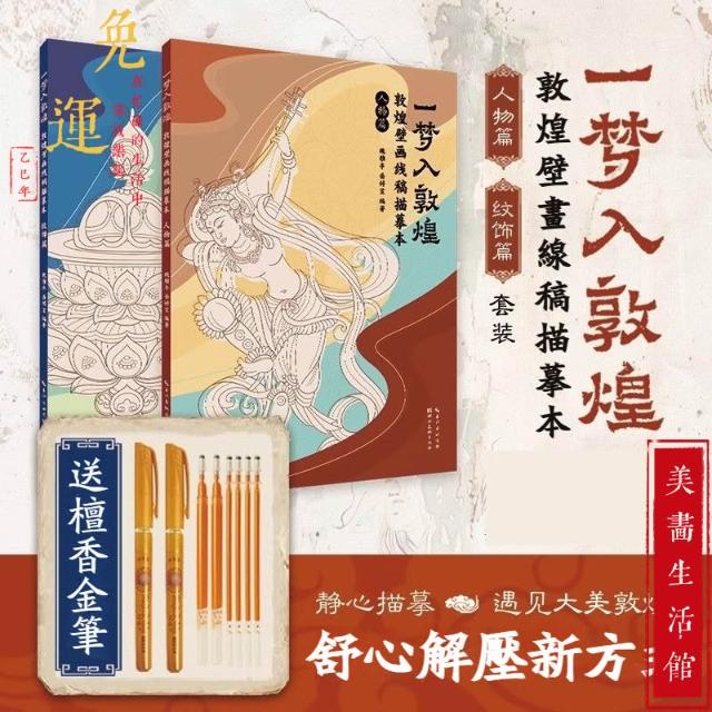 一夢入敦煌 全兩冊 全套描金筆 敦煌壁畫線稿描摹本 敦煌線描本 佛像描金畫冊 描繪佛像 描繪本