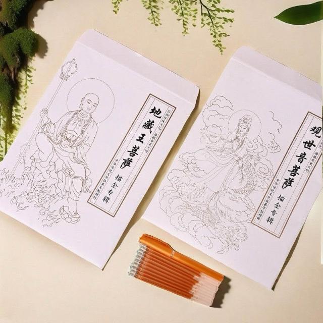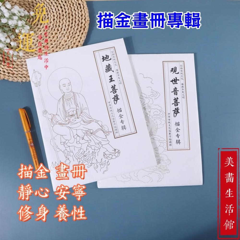 地藏王菩薩 觀音菩薩 描金畫冊 贈描金筆 靜心 臨摹 線稿 白描專輯 畫稿 手繪 減壓 修心