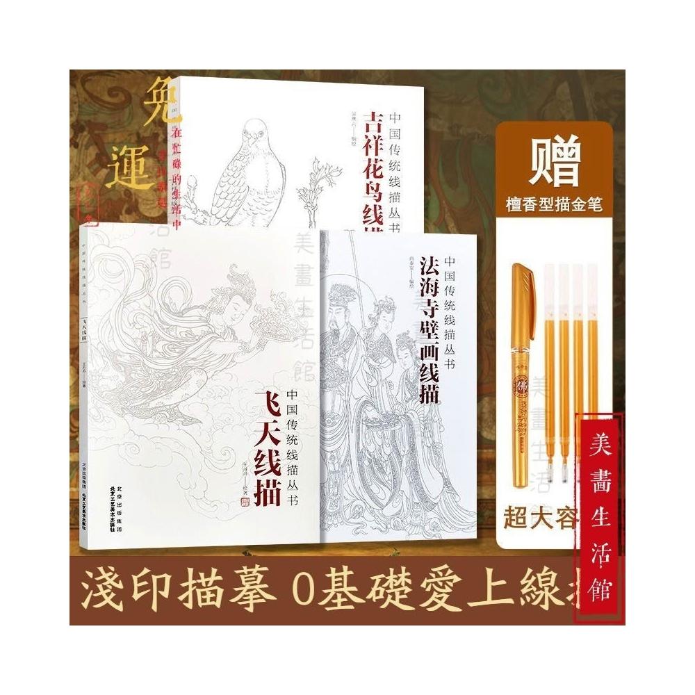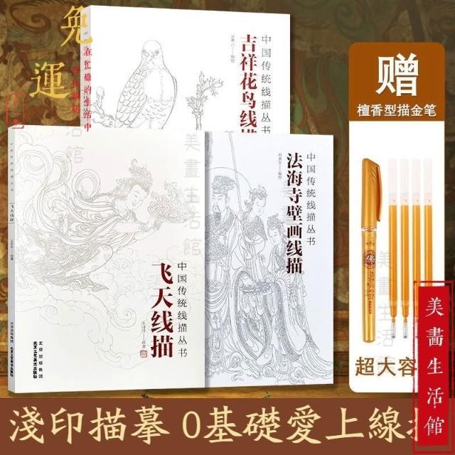隔日達⚡現貨6H出⚡中國傳統線描 全三冊贈抄經筆 一念敦煌 抄寫佛像描繪 敦煌壁畫 壁畫描繪 法海寺 花鳥描繪 飛天線描