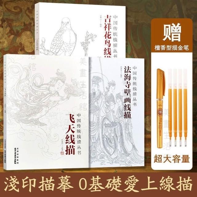 隔日達⚡現貨6H出⚡中國傳統線描 全三冊贈抄經筆 一念敦煌 抄寫佛像描繪 敦煌壁畫 壁畫描繪 法海寺 花鳥描繪 飛天線描