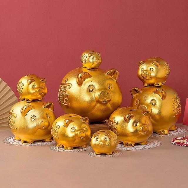 金豬撲滿 大豬公 金字版 金豬存錢筒 存錢罐大號家居 客廳擺件 開業 創意小豬存錢罐 不掉色