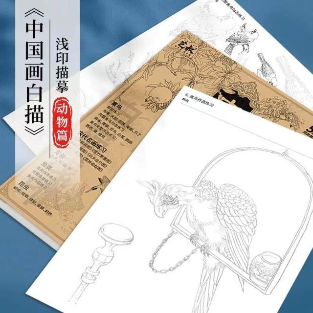 台灣現貨 國畫 白描 描摹本 4本套裝 動物/人物/花卉/山水/ 白描底稿 工筆畫 臨摹畫冊