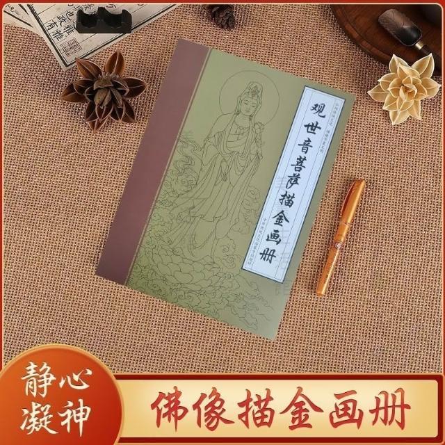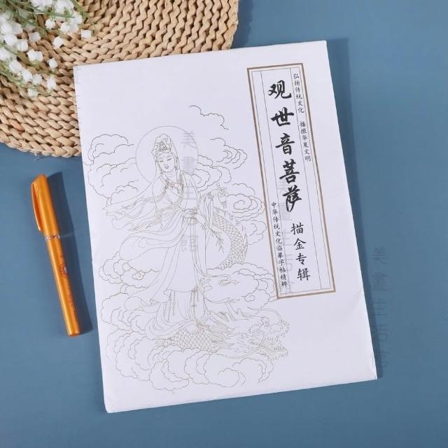 靜心 祈福🔥現貨6H出🔥32佛像白描本 靜心修身養性安寧 贈描金筆 繪畫本 經文菩薩佛像描繪佛畫人物臨摹畫冊素描