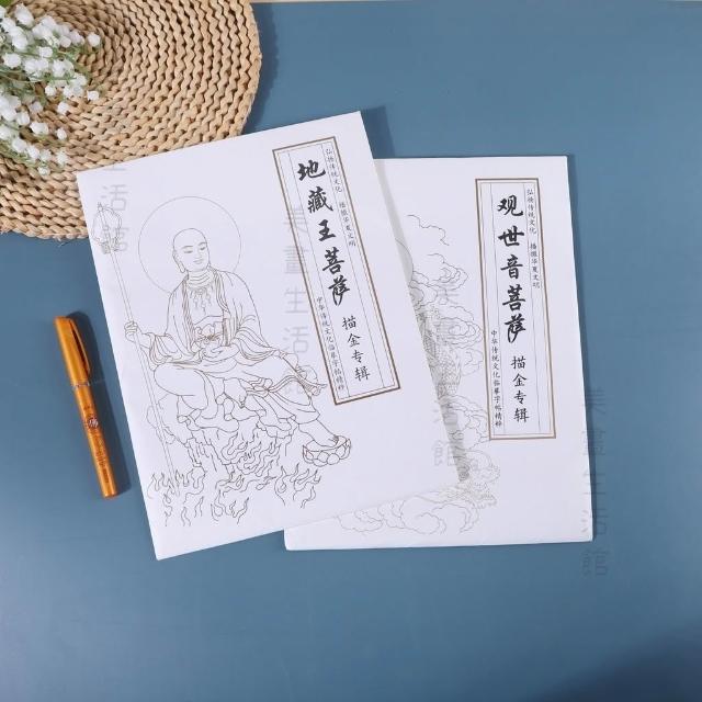 靜心 祈福🔥現貨6H出🔥32佛像白描本 靜心修身養性安寧 贈描金筆 繪畫本 經文菩薩佛像描繪佛畫人物臨摹畫冊素描