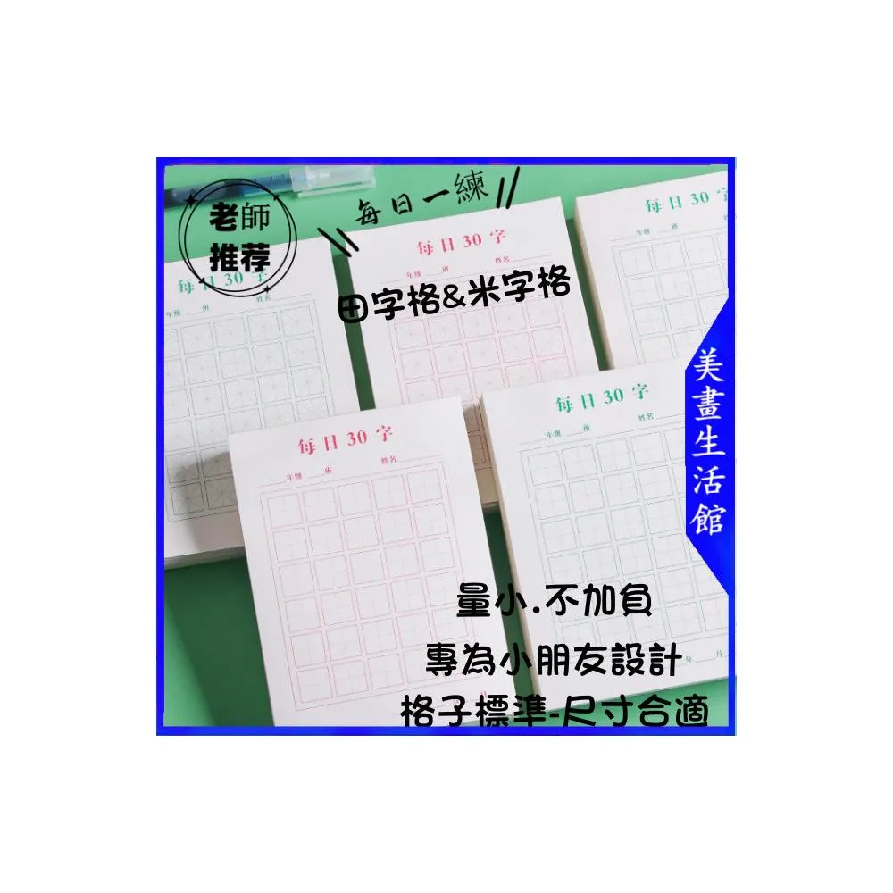 6h出貨 田字格練字本 每日30字 田字格 米字格 硬筆書法紙作品練習本兒童小學生練字書寫用