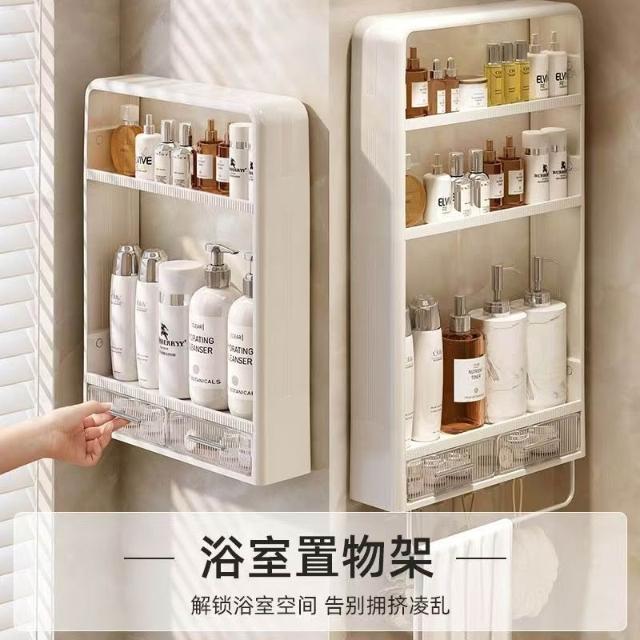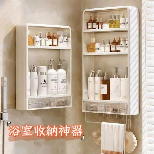 免打孔置物架 浴室壁掛收納 浴室收納置物架 掛壁式置物架 浴室置物櫃 浴室收納盒 浴室置物架