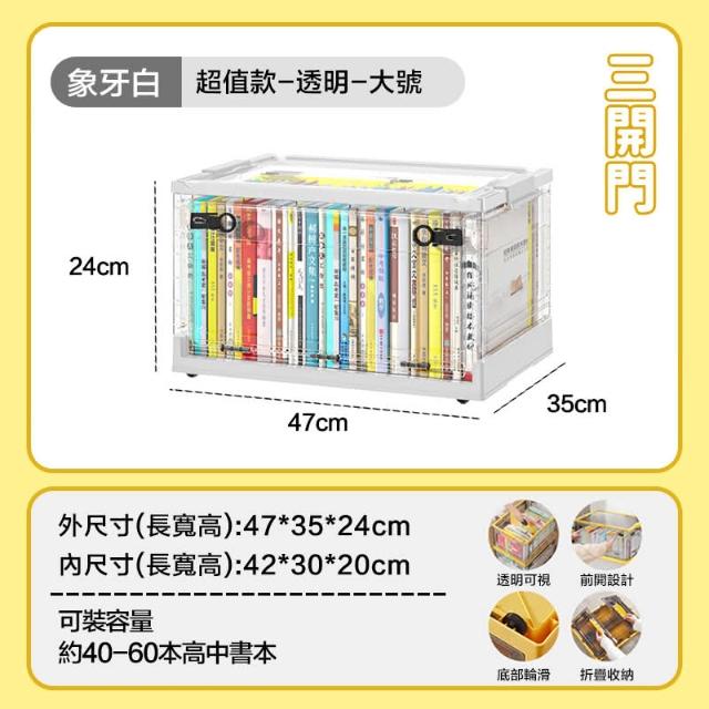 LEMU 樂牧折疊收納箱40L大號衣物整理箱摺疊櫃三開式收納箱(收納箱/收納櫃/摺疊收納箱/折疊收納箱/置物箱)