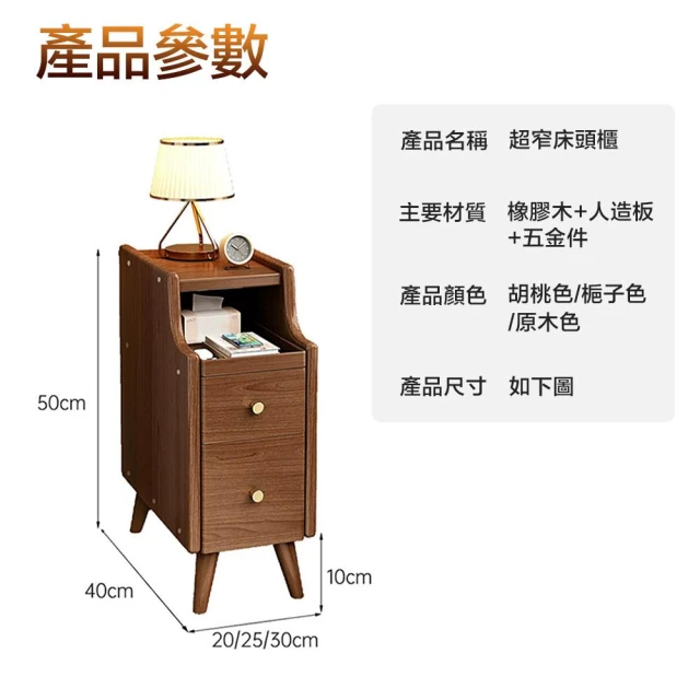 LEMU 樂牧實木床頭櫃床邊櫃 寬20/25/30cm窄櫃(床頭櫃/床邊收納櫃/床頭抽屜櫃/窄床頭櫃)