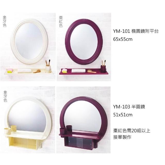 YM-103 孔距26.5cm (象牙色) 51*51cm 半圓鏡 無除霧鏡 衛浴鏡 化妝鏡 塑膠框 台灣製造