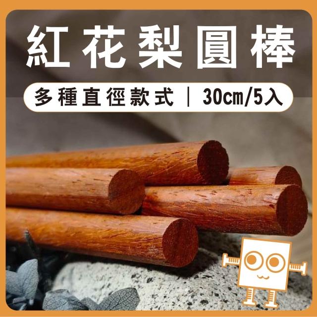 紅花梨木棒 長度30cm(5入)|木棍、實木圓棒、硬木棒、原木棒、模型拼裝、親子勞作、DIY手作、美術工藝材料