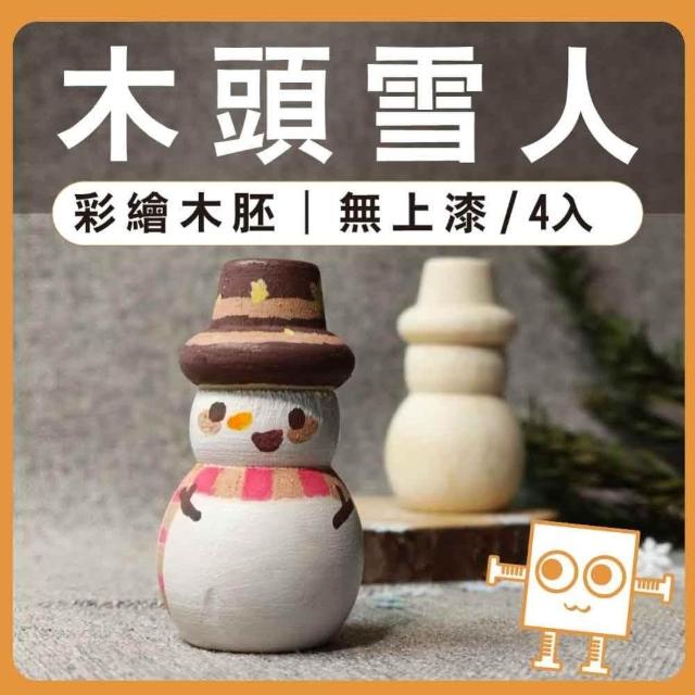 彩繪白胚 木頭雪人 4入|親子手作、畫畫素材、實木雪人、聖誕雪人、原木擺件、親子勞作、DIY手作、美術工藝材料