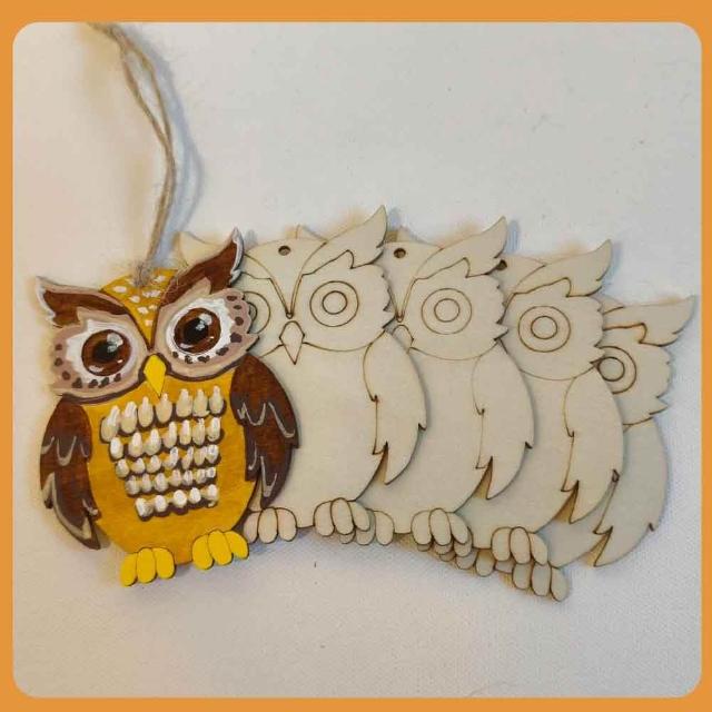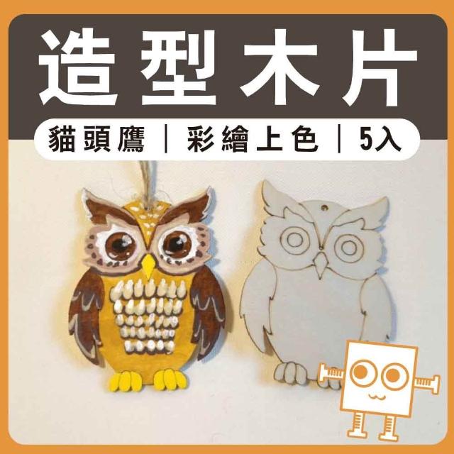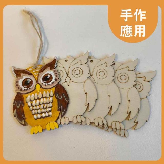 貓頭鷹造型木片(5入)附吊繩| 親子手作、畫畫素材、造型木片、美勞彩繪、原木掛飾、親子勞作、DIY手作、美術工藝材料