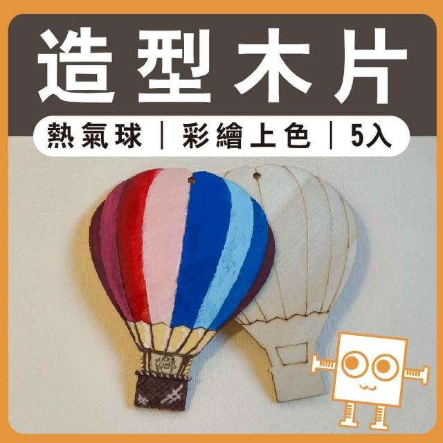 熱氣球造型木片(5入)附吊繩| 親子手作、畫畫素材、造型木片、美勞彩繪、原木掛飾、親子勞作、DIY手作、美術工藝材料
