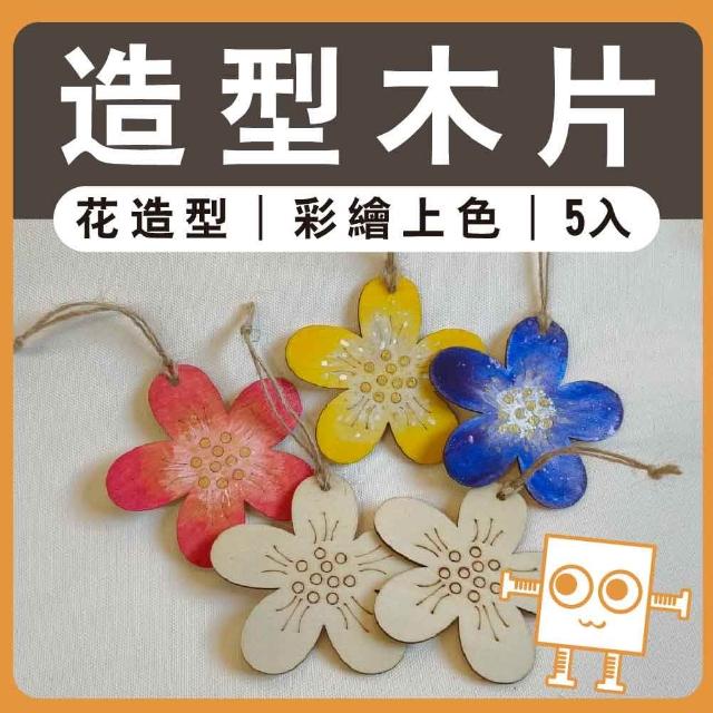 花造型木片(5入)附吊繩| 親子手作、畫畫素材、造型木片、美勞彩繪、原木掛飾、親子勞作、DIY手作、美術工藝材料