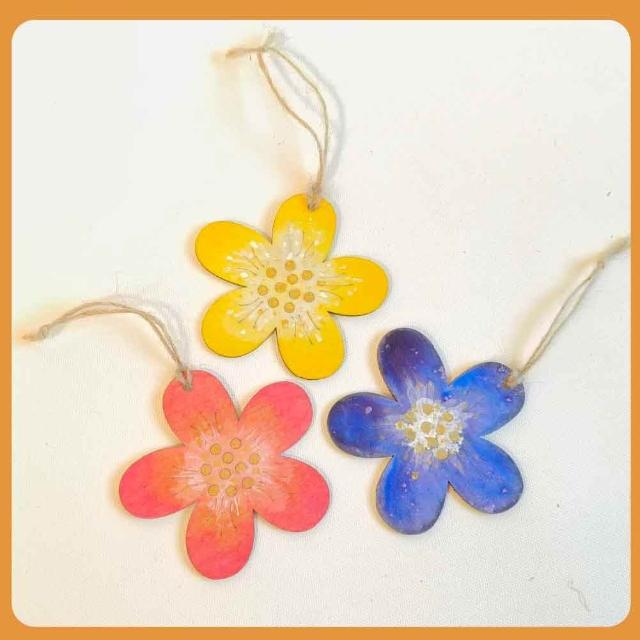 花造型木片(5入)附吊繩| 親子手作、畫畫素材、造型木片、美勞彩繪、原木掛飾、親子勞作、DIY手作、美術工藝材料