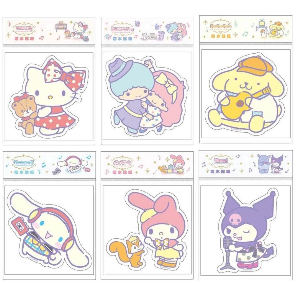 SANRIO 三麗鷗Hello Kitty 酷洛米 美樂蒂 雙星仙子 布丁狗 防水貼紙 防水貼紙 可愛卡通 造型貼紙 透明 裝飾 貼紙