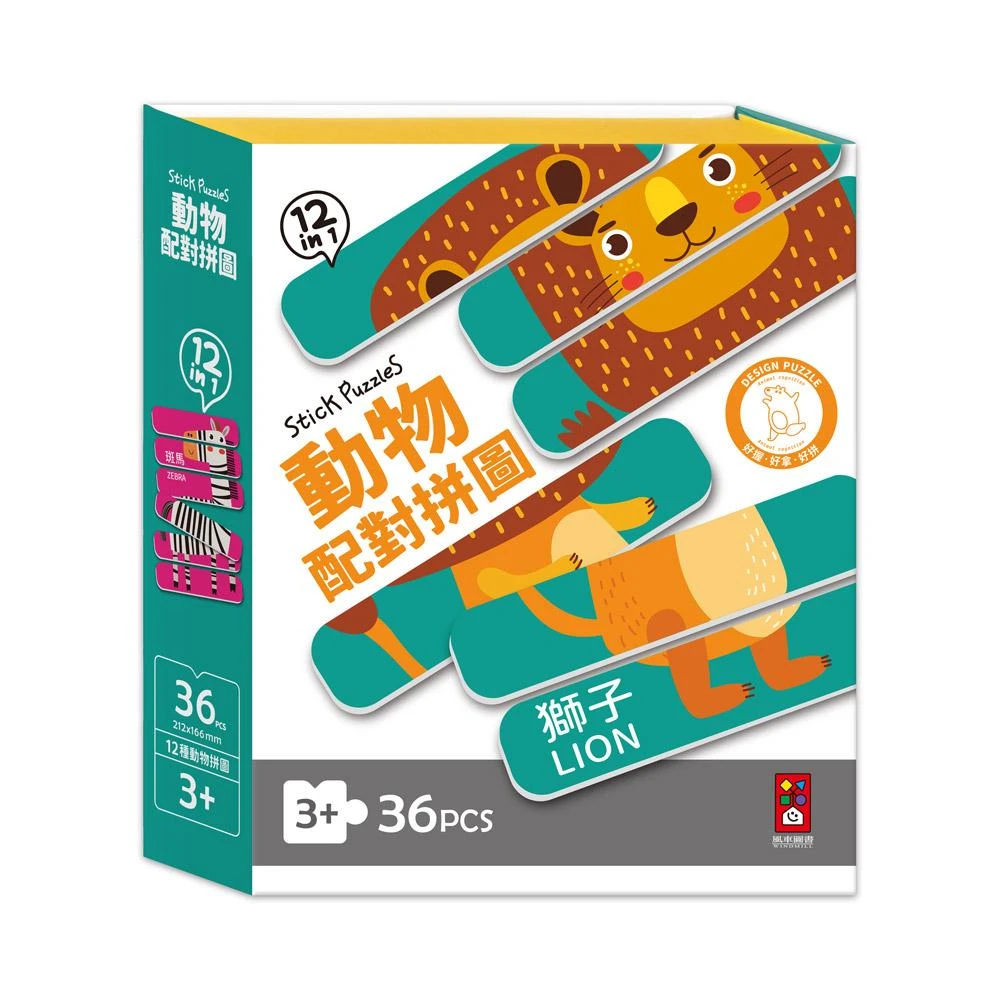 風車圖書動物配對拼圖 Stick Puzzles 動物拼圖 棒狀造型拼圖 36片大長條拼圖 3歲以上 玩具 幼兒學習 12合1拼圖 動物主題 兒童拼圖