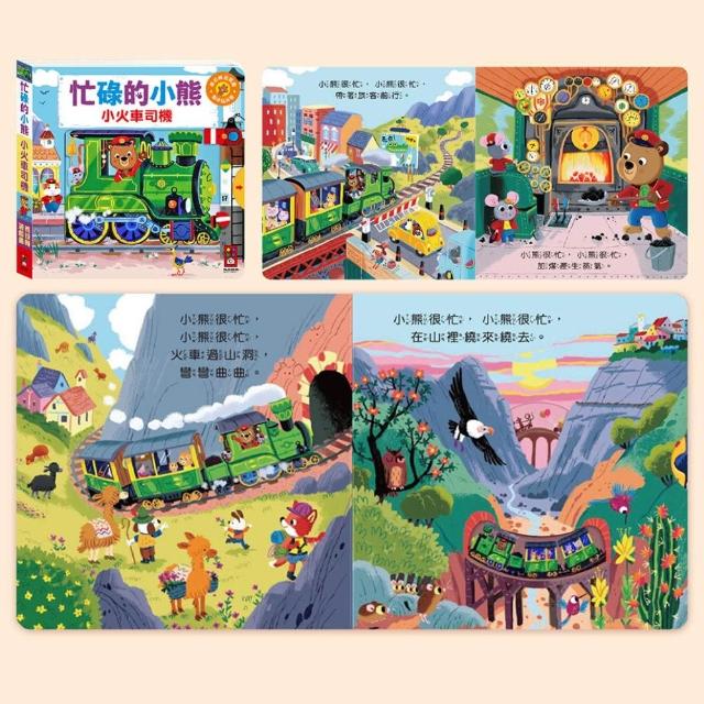 風車圖書忙碌的小熊 小火車司機|推拉轉互動繪本 幼兒認知學習 手眼協調訓練 親子共讀 厚紙書