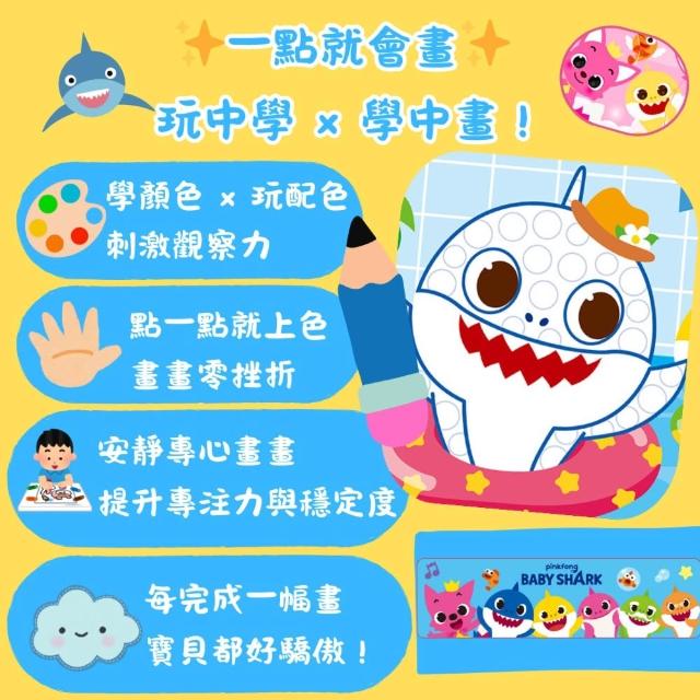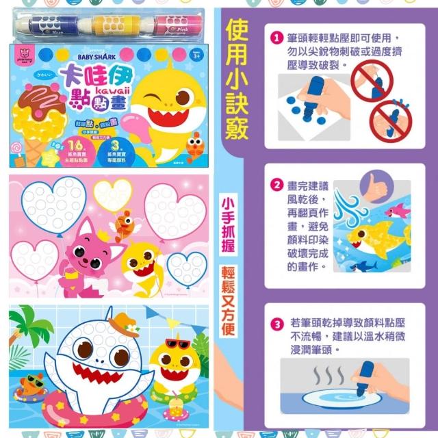 碰碰狐 卡哇伊點點畫|Baby Shark主題 兒童DIY創意畫冊 可水洗顏料 附3色顏料筆+16張主題畫卡 4~8歲兒童適用