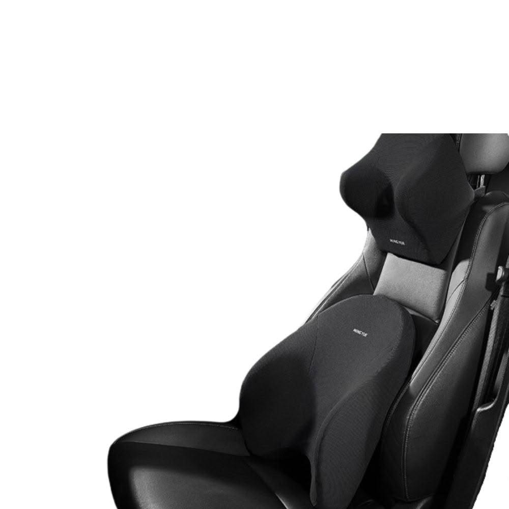 汽車用記憶棉頭枕腰靠組 黑色 汽車頸枕 汽車靠墊 車用枕頭 座椅腰拖 護腰支撐 透氣表布 記憶棉