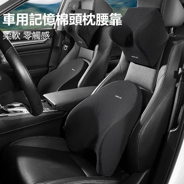 汽車用記憶棉頭枕腰靠組 黑色 汽車頸枕 汽車靠墊 車用枕頭 座椅腰拖 護腰支撐 透氣表布 記憶棉
