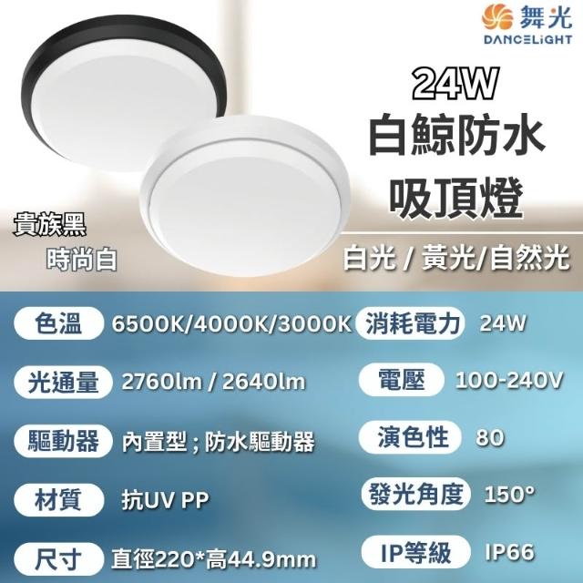 DanceLight 舞光單入 16W 24W 白鯨防水吸頂燈 白殼 黑殼 (白光 黃光 防水吸頂燈 吸頂燈 陽台燈 IP66)