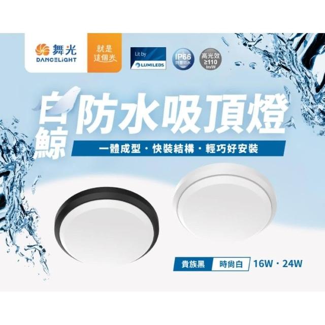 DanceLight 舞光單入 16W 24W 白鯨防水吸頂燈 白殼 黑殼 (白光 黃光 防水吸頂燈 吸頂燈 陽台燈 IP66)