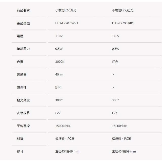 DanceLight 舞光舞光 E27 0.5W LED 神明燈 小夜燈 燈泡 0.5W 黃光 紅光 無藍光危害
