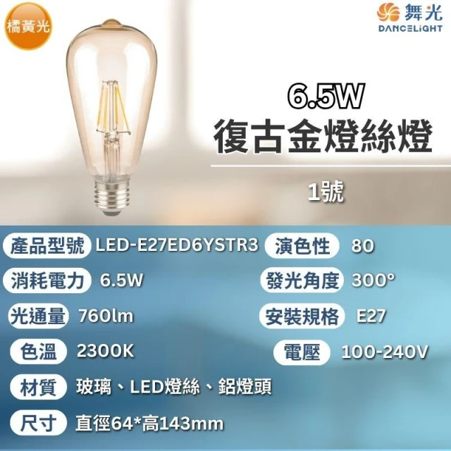 DanceLight 舞光舞光原廠授權 LED 燈絲燈 4W 6.5W 愛迪生燈泡 鎢絲燈泡 鎢絲 鎢絲球泡 LED燈絲泡 工業風燈泡 黃光