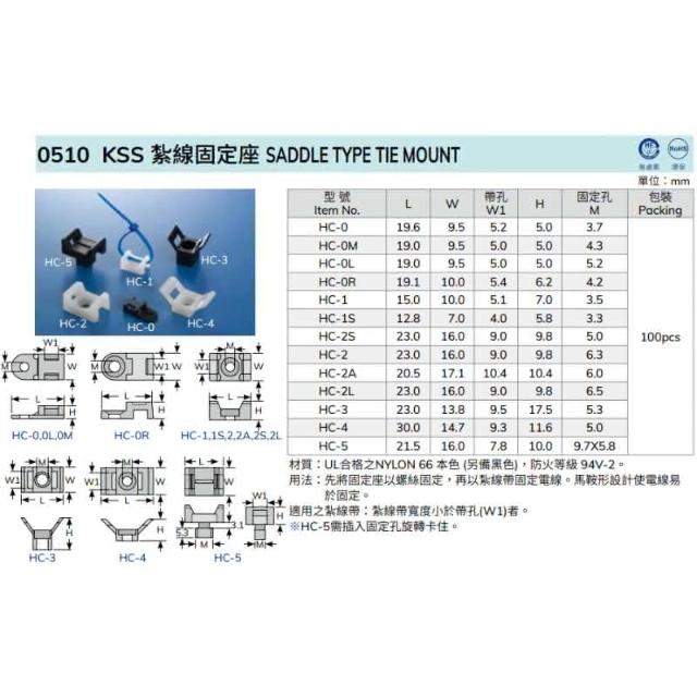 KSS 凱士士 含稅開發票 馬鞍形 束帶 固定座 紮線固定座 馬蹄 紮帶扣 紮帶固定座 尼龍紮帶固定座 定位片 配線固定